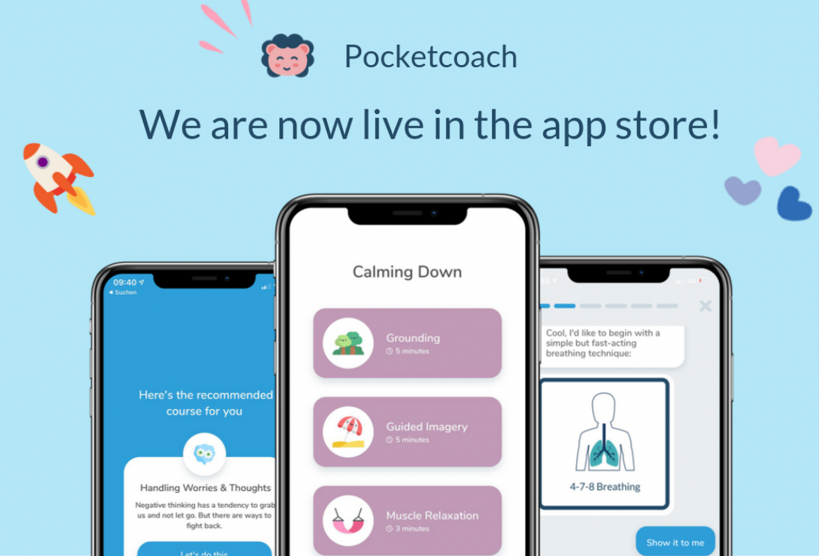 Pocketcoach is a mental health self-help app, a digital coach that teaches skills to reduce anxiety, stress
